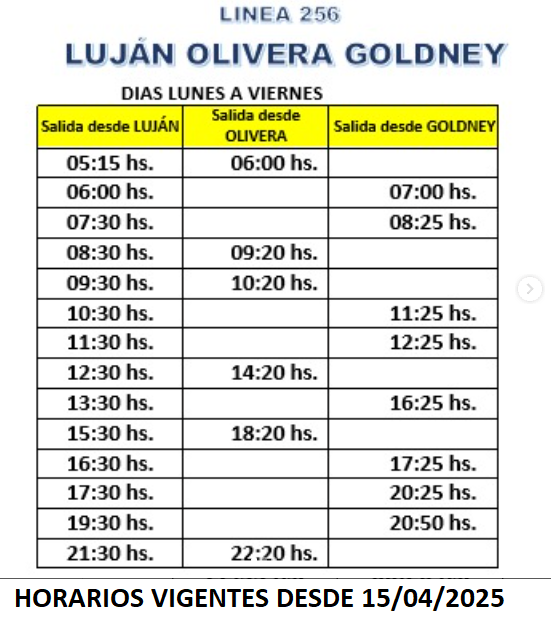 Línea 500 / 256 : Luján - Pueblo Nuevo - Olivera - Goldney. Horarios 2025 y Recorridos.