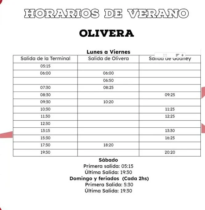 Horarios de Verano 2024. Solo hasta el inicio del calendario escolar.