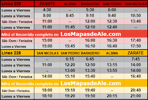 Horarios Línea 228 Zárate - Alsina - Baradero - San Pedro - San Nicolás.