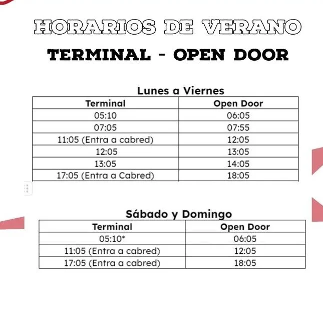 Horarios durante la Temporada Escolar VIGENTES DESDE ABRIL 2025.