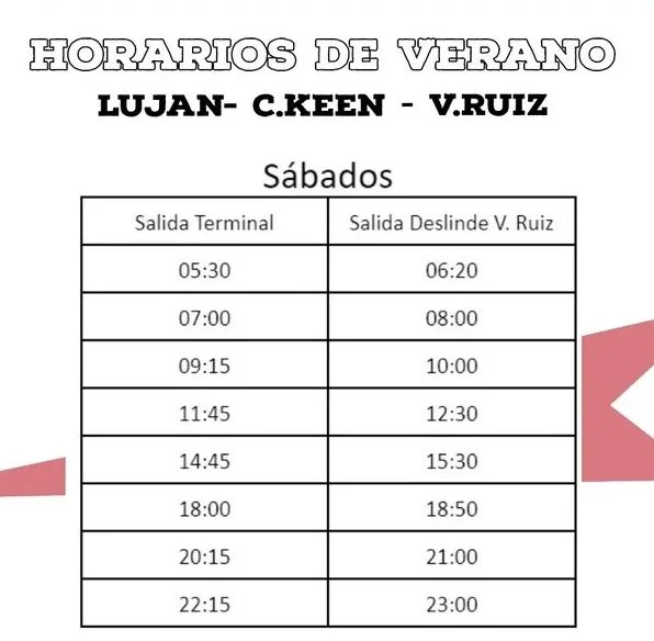 Para tener en cuenta al regreso, el horario del colectivo en la parada de Carlos Keen es 10 minutos después del de salida de Villa Ruiz.