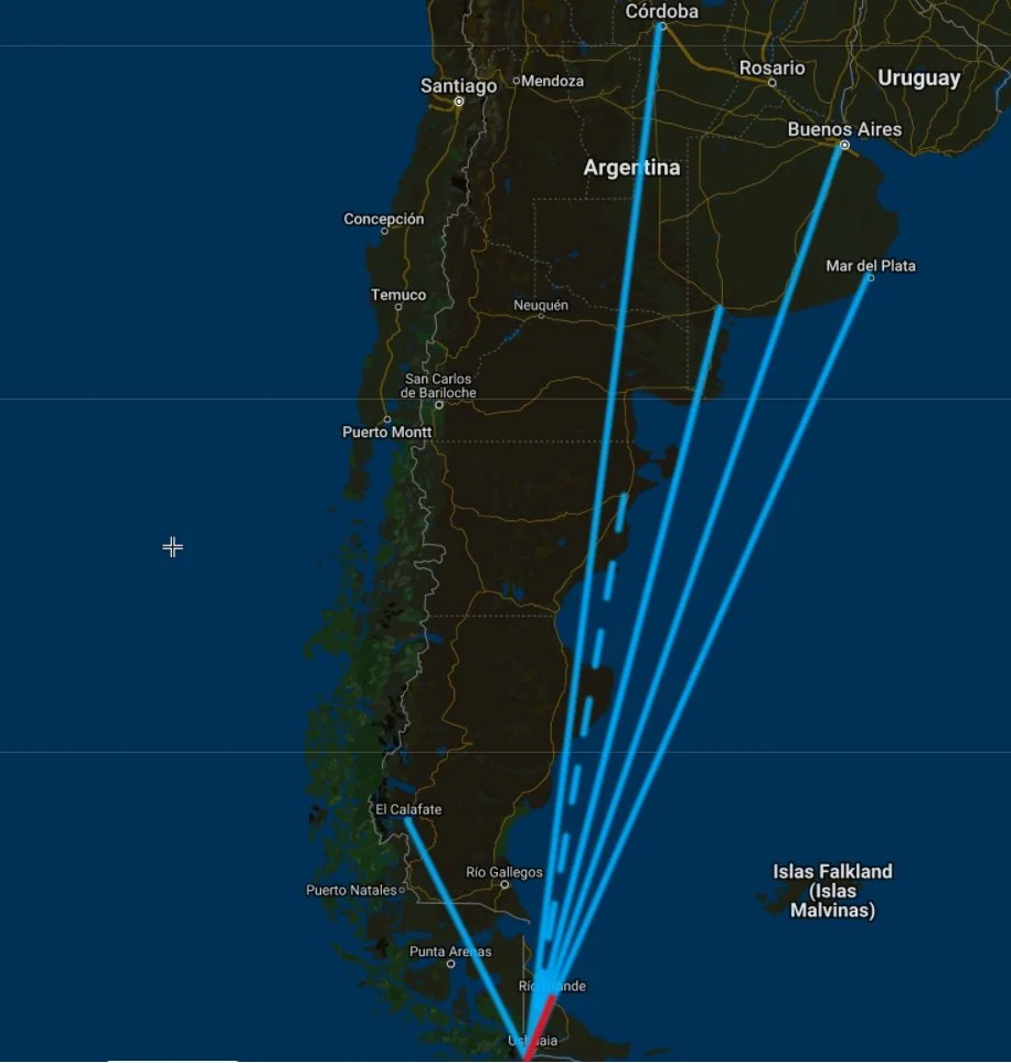 Para finalizar, dejamos el párrafo Internacional, han existido conexiones regulares con Chile 🇨🇱, mas precisamente con Punta Arenas, pero Ushuaia recibe vuelos mucho mas extensos que el de Córdoba, existen numerosos operadores turísticos que estacionalmente unen distintas capitales europeas con el punto mas al sur de América.